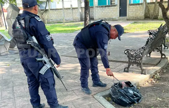 De inmediato se presentaron los agentes de la Policía Municipal y Estatal Preventiva para indagar al respecto y corroborar la denuncia. Tras revisar la bolsa, confirmaron que se trataba de vísceras de res en estado de descomposición.