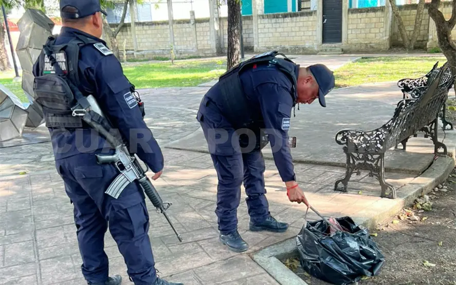 Una bolsa de color negro, con un olor nauseabundo, fue abandonada en un parque del municipio de Comitán, esto movilizó a policías municipales y estatales para investigar el incidente, pues vecinos temieron que se tratara de restos humanos.