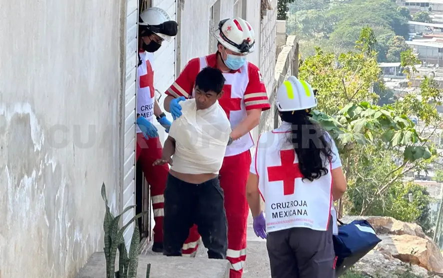 Con una probable fractura en el hombro izquierdo acabó un joven luego de que cayera desde una segunda planta en la colonia Comitán, localizada en la capital Tuxtla Gutiérrez, antes del mediodía del martes.