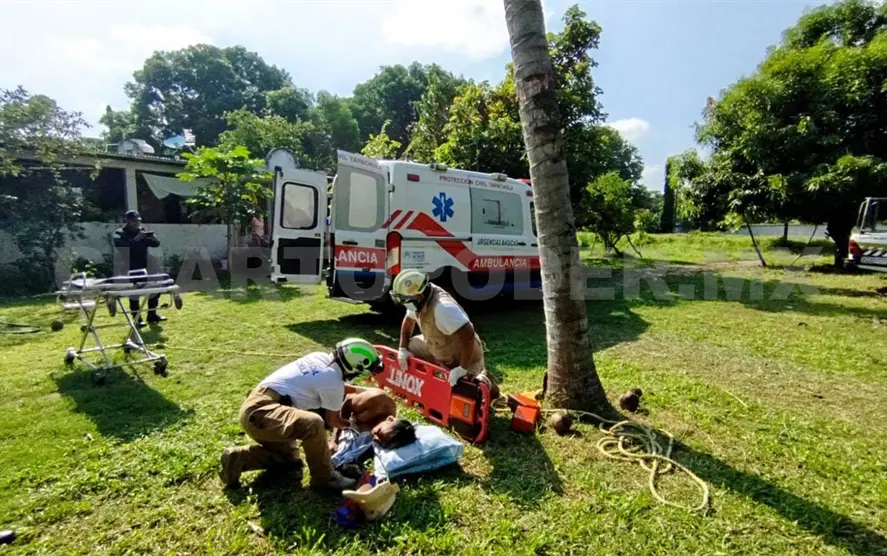 Con diversas lesiones resultó una persona del sexo masculino, de oficio campesino, quien sufrió una caída desde lo alto de un árbol de coco en la zona baja del municipio de Tapachula.