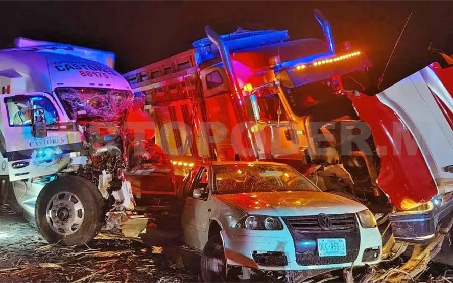 Los afectados fueron un tráiler de la empresa de paquetería Castores, un camión torton de color rojo, un vehículo Volkswagen Jetta y un Honda City, ambos de color blancos, los cuales tenían considerables daños.