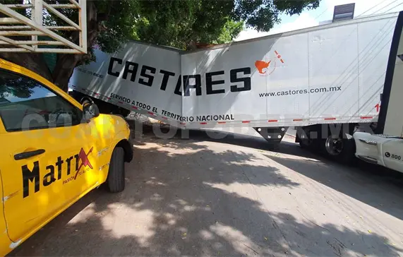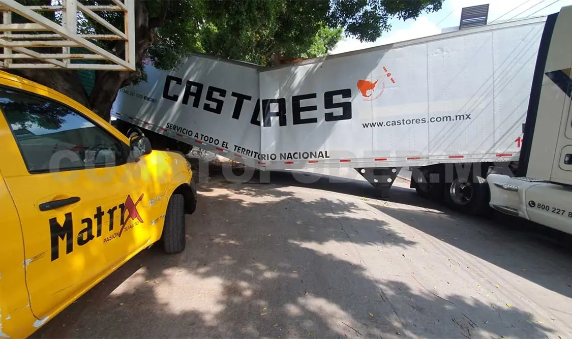 La caja seca de un tráiler propiedad de una empresa privada, quedó partida en dos luego de ganarle el peso, durante la mañana de ayer en la delegación Terán de la capital Tuxtla Gutiérrez.