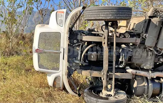 El percance ocurrió a la altura de la finca San Ángel, cuando un camión de la empresa XX Lager volcó a un costado de la vía tras una aparente falla mecánica, lo que hizo que el conductor perdiera el control del volante.
