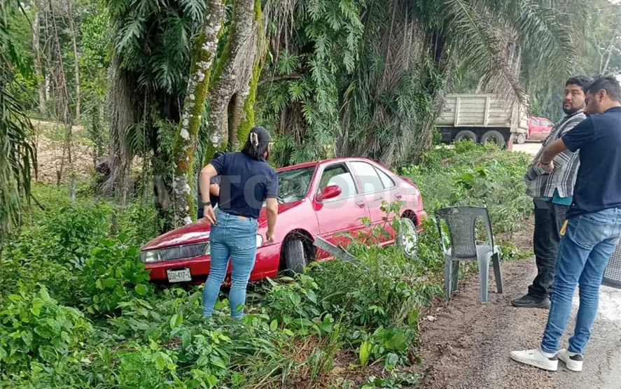 Tres docentes que salieron desde la ciudad a bordo de un automóvil Nissan Sentra, color rojo, con placas de circulación del estado de Chiapas, para llegar a su centro de trabajo ubicado en el ejido Galilea, sobre la carretera federal Palenque-Benemérito de Las Américas, entre el tramo de los ejidos 20 de Noviembre y Chancalá Río Seco, el chofer de un camión de acarreo de material pétreo prácticamente los sacó de circulación.