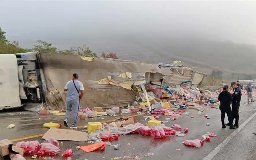 Debido a que la mercancía quedó regada sobre la vía, los ciudadanos no perdieron la oportunidad de hacer la despensa y cargar con todo lo que pudieron, dejando sin productos el tráiler volcado.