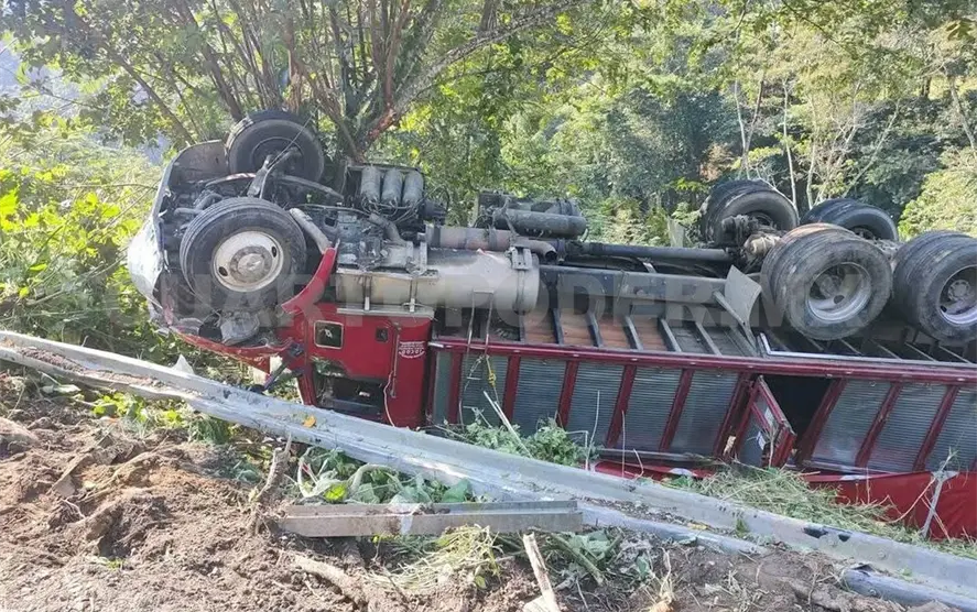 Al parecer el operador del camión habría perdido el control de la unidad, lo que provocó que abandonara la carpeta asfáltica y cayera fuera de la vía.