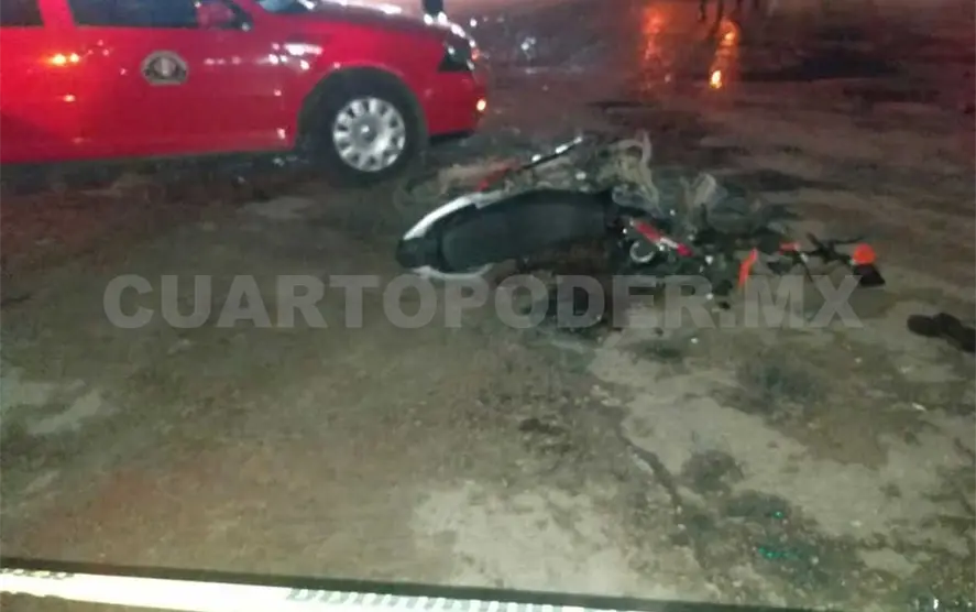 El percance dejó al conductor de la motocicleta lesionado, quien fue trasladado al hospital regional por paramédicos de Protección Civil Municipal. En tanto que en el lugar su acompañante quedó tendido sin vida, al sufrir severas lesiones que le provocaron la muerte.