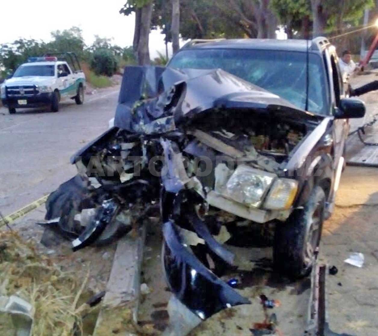 El fatal percance se registró hacia las 04:40 horas de ayer domingo, cuando la conductora de una camioneta negra de doble cabina, Ford tipo Explorer Sport Trac, con matrícula CV- 77-168 se estrelló en un árbol.
