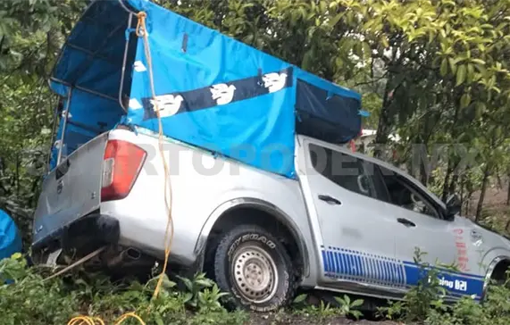 Unos arbustos y pequeños árboles detuvieron la marcha de la unidad y evitaron que cayera al fondo de una cañada, con ello también se evitó una tragedia.
