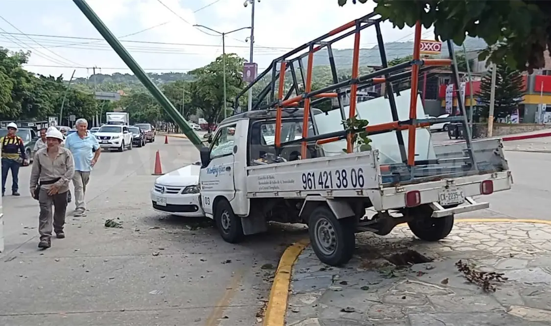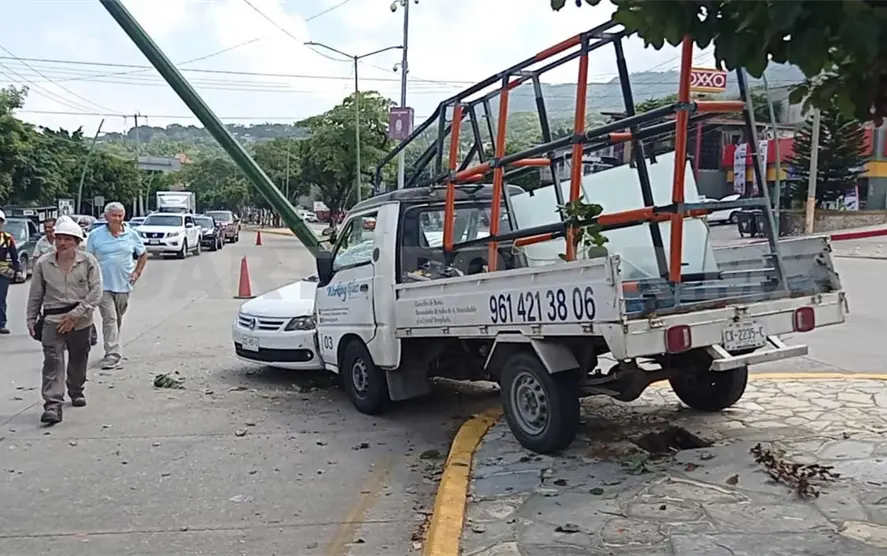 La camioneta de la empresa privada salió proyectada contra el andén central y terminó derribando un poste de alumbrado público, para después estrellarse contra un Volkswagen Gol de color blanco.