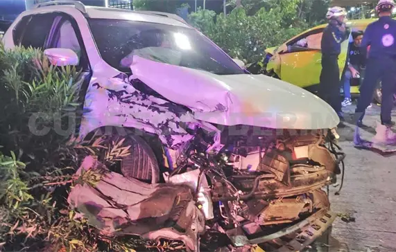 Debido a esto, la X-Trail se impactó contra las jardineras del andén central que divide ambos carriles.