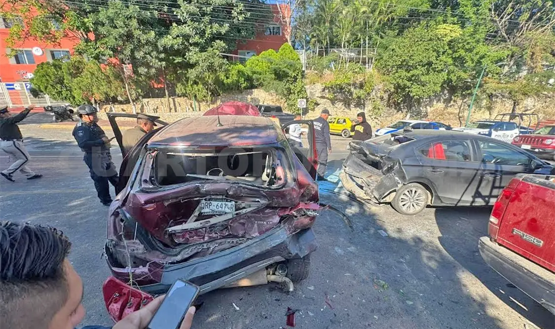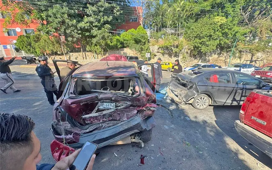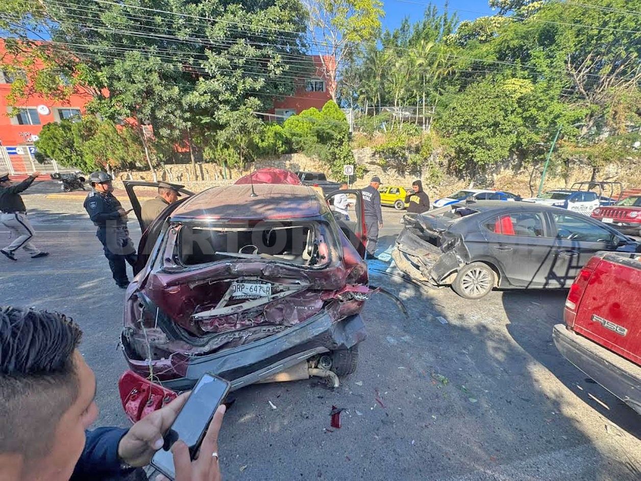 Seis personas lesionadas y daños materiales valuados por miles de pesos dejó como saldo un accidente carretero múltiple suscitado sobre la vía Tuxtla Gutiérrez-Copoya, a la altura del Colegio La Paz.