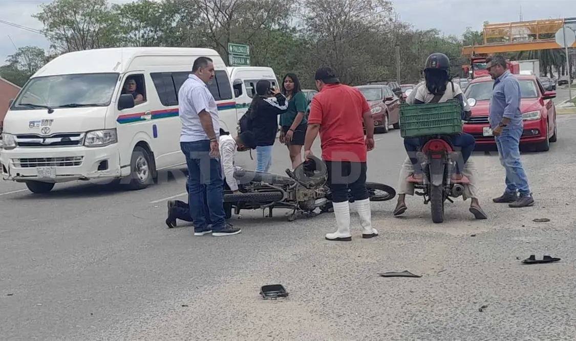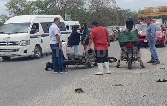 Testigos refirieron que el motociclista no midió su distancia y se colocó muy cerca de la unidad que realizó una maniobra y debido a ello, el primero chocó en el costado del segundo, por lo que perdió el control y derrapó.