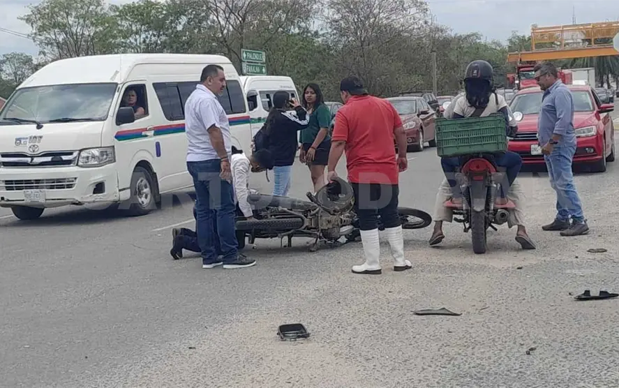 Un accidente de tránsito ocurrió sobre el bulevar Palenque-Pakal Ná, frente a la entrada de la estación del Tren Maya y del Politécnico.