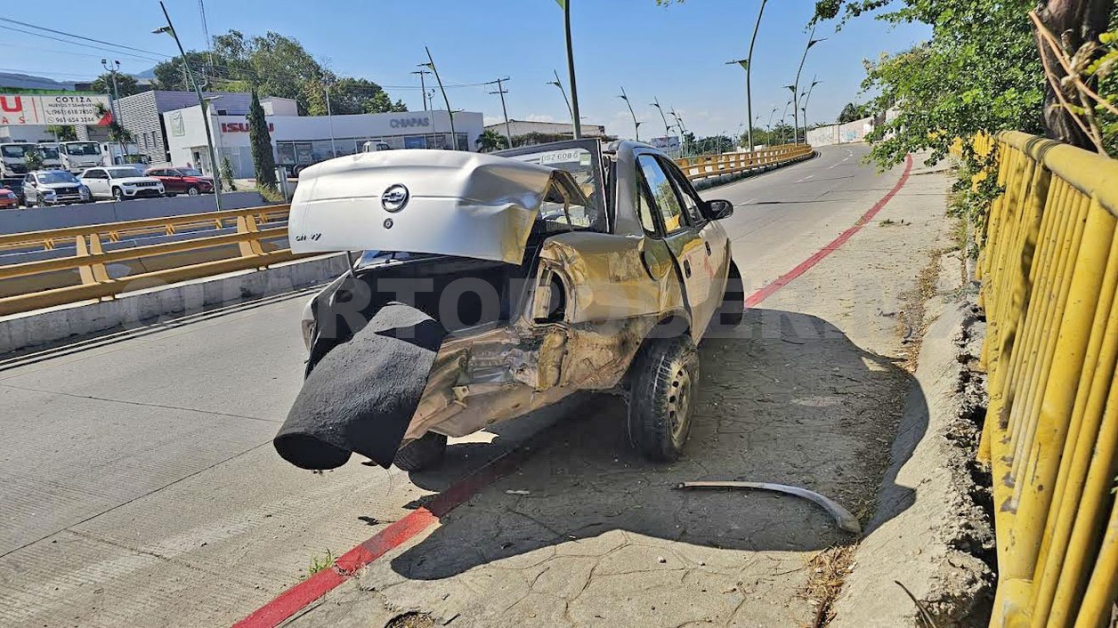 Daños materiales cuantiosos y dos personas lesionadas dejó como saldo un aparatoso accidente suscitado sobre el libramiento Sur Oriente, a aproximadamente 350 metros del entronque con la carretera a Villaflores.