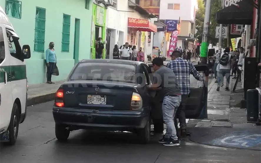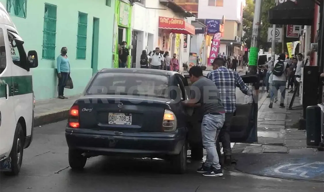 Tres sujetos que al parecer circulaban en estado inconsciente en el centro de la capital del estado, se estrellaron contra el poste de una luminaria, por lo que estos enderezaron el sedán y emprendieron la fuga.