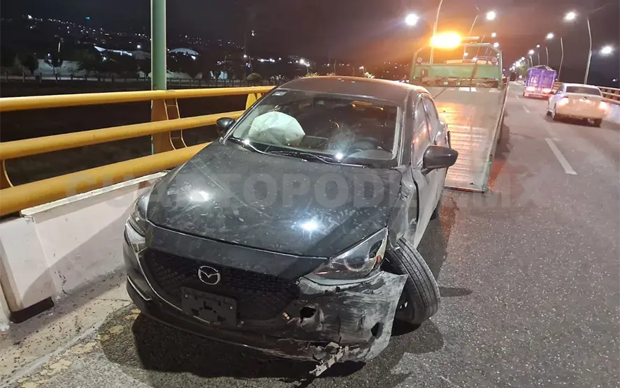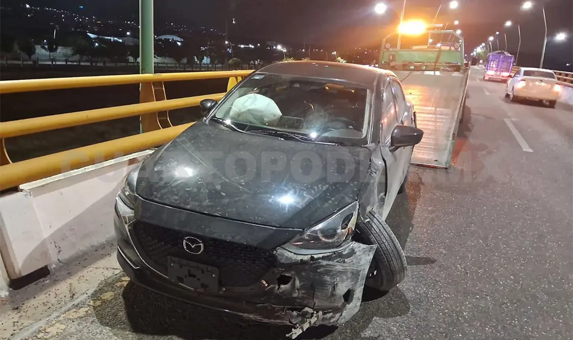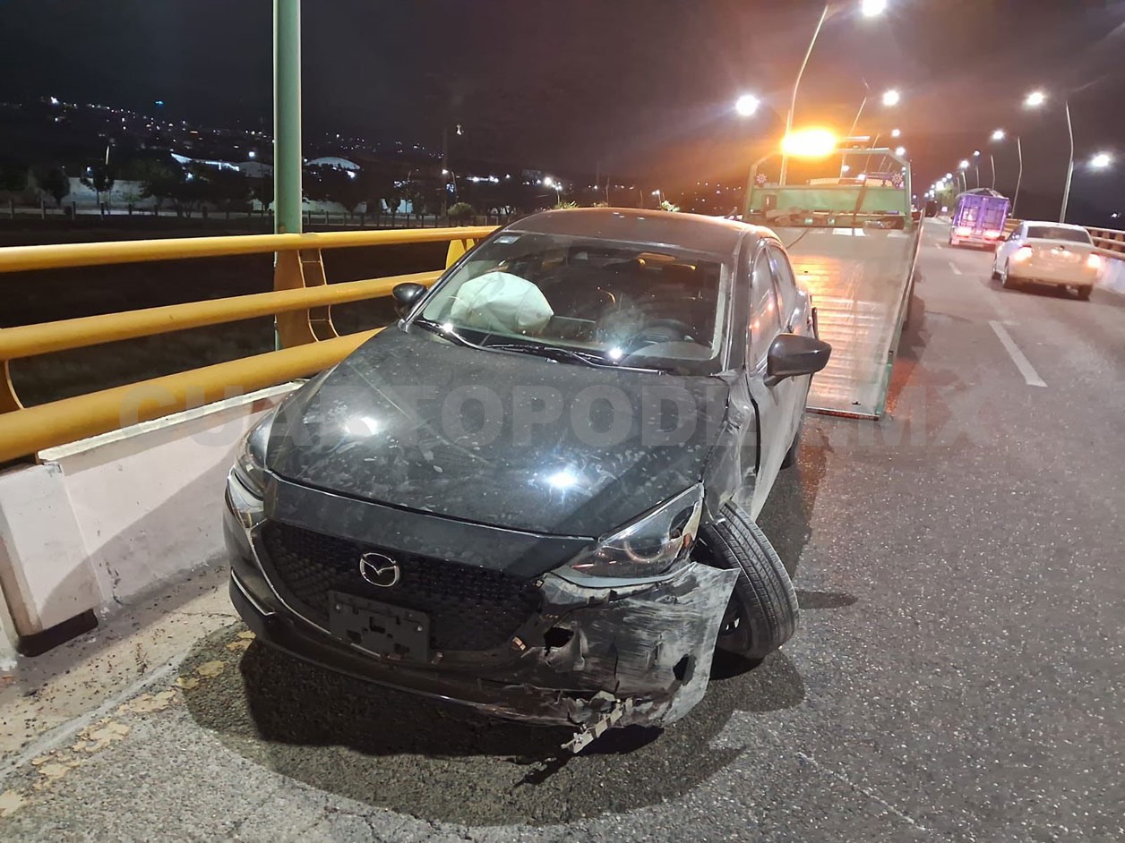 Se informó que se trataba de un automóvil sedán particular, sin placas de circulación, el cual circulaba sobre la zona pero el exceso de velocidad, aunado a una mala maniobra, originó que acabara estampándose contra la guarnición de El Trébol.