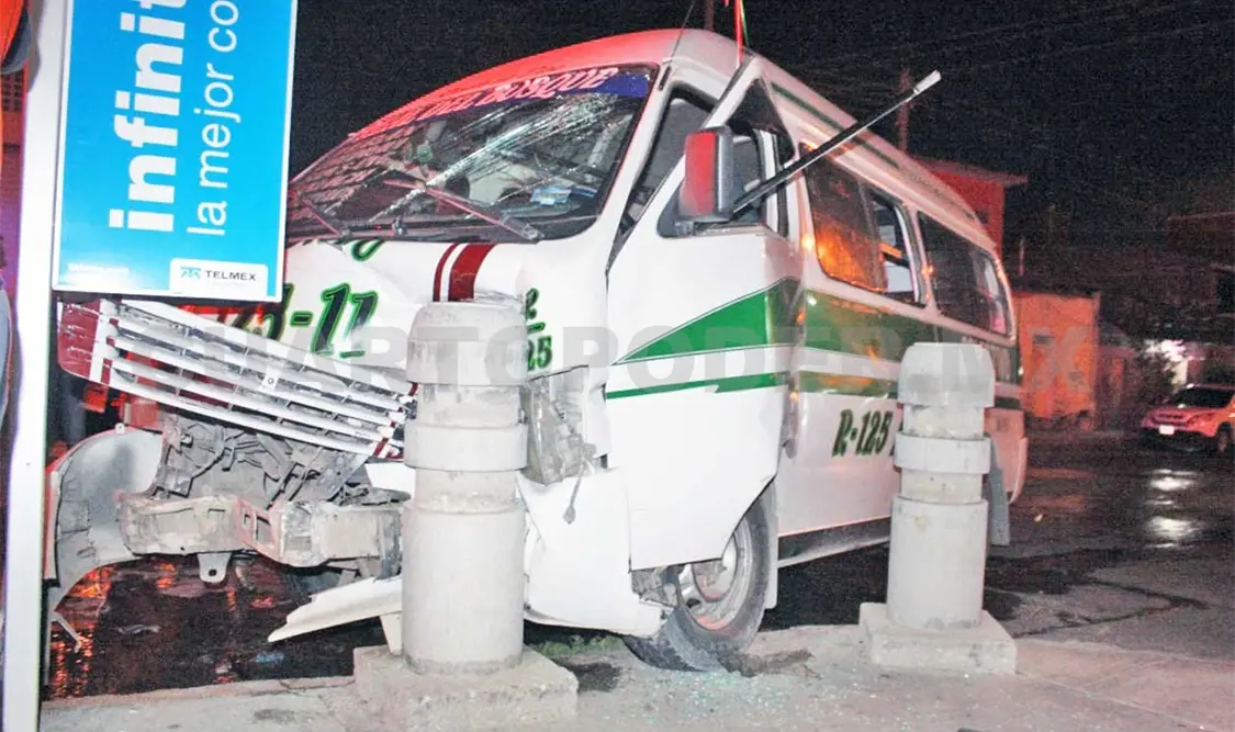 Un fuerte accidente se suscitó la noche del lunes en el primer cuadro de la capital del estado, donde un colectivo perdió el control tras ser impactado por un vehículo y terminó incrustado en unos muros de contención.