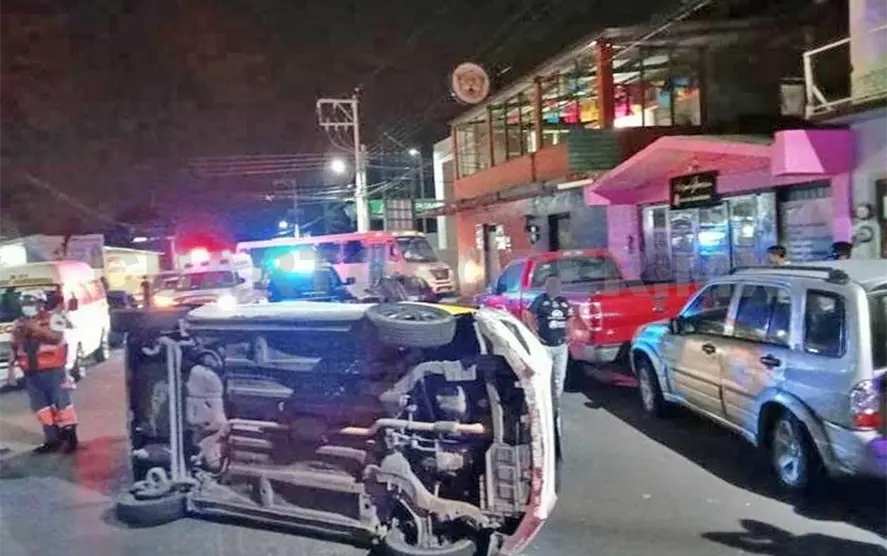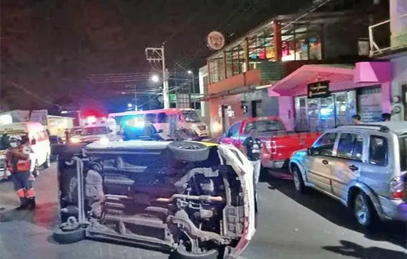Fuentes oficiales dieron a conocer que presuntamente el exceso de velocidad provocó que el conductor de un taxi perdiera el control de la unidad y terminara volcado, resultando con lesiones leves y daños materiales.