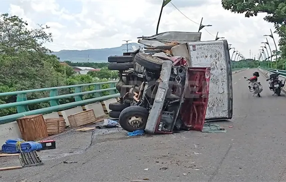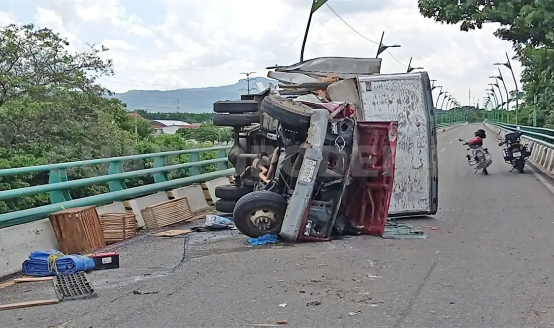 Allí, se informó sobre un camión de tres toneladas con caja seca, de color blanco y cabina roja, procedente del municipio de Ixtapa, del cual su conductor se había quedado dormido y derivado de esto se estrelló contra el muro de contención, por lo que terminó volcando sobre la carpeta asfáltica.