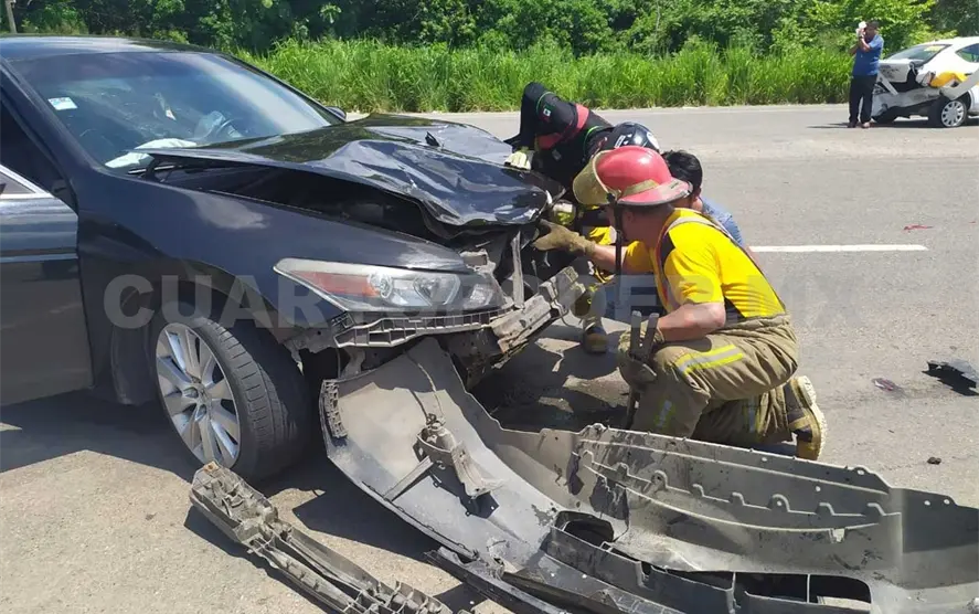 Un choque entre un taxi y un vehículo particular sobre el tramo carretero Tapachula-Huixtla dejó como saldo a una persona lesionada y daños materiales por varios miles de pesos.