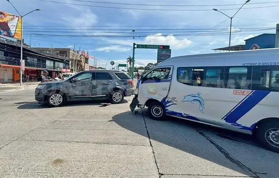 Al menos siete personas resultaron lesionadas, tres de ellas de gravedad, al impactarse la combi de pasajeros en que iban contra una camioneta particular, en la esquina de la 4ª. avenida Sur y 20ª. calle Poniente, frente a Plaza Cafetos de Tapachula.