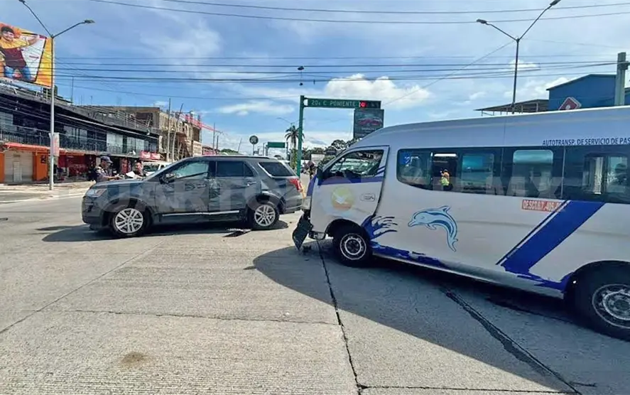 Se dijo que una camioneta Explorer con placas de Guatemala se desplazaba de oriente a poniente sobre la 20ª. Poniente y al llegar a la 4ª. Sur, se impacta contra la combi de ruta foránea. Ambos conductores señalaban que tenían la “luz verde” del semáforo.