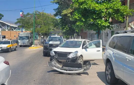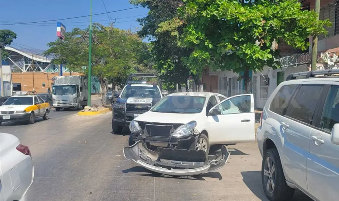 Únicamente daños materiales valuados por miles de pesos dejó como saldo un accidente de tránsito suscitado sobre la 15.ª calle Oriente y callejón de la 4.ª Sur del barrio Santa Cruz, en la capital del estado.