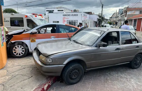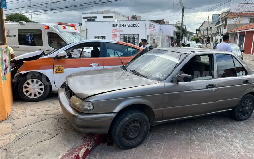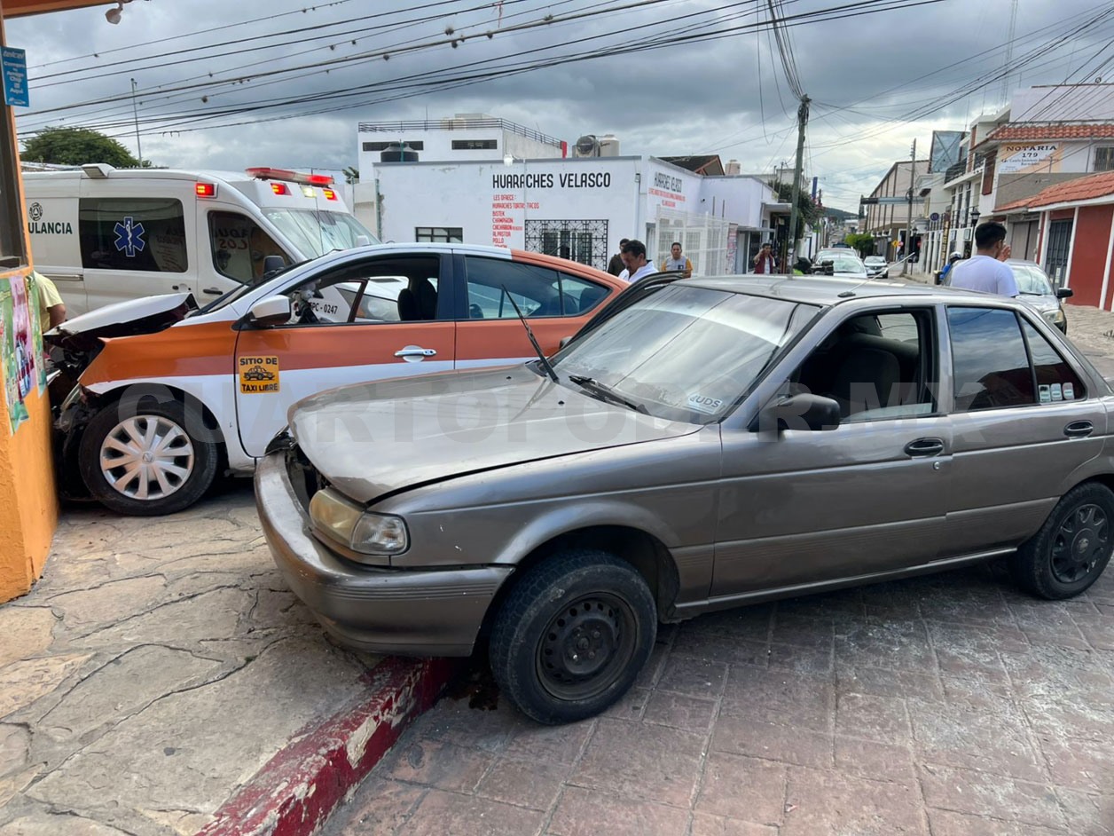 La aparatosa colisión se dio cuando el conductor de un vehículo Nissan Tsuru de color gris circulaba en la avenida con rumbo hacia el sur, pero al llegar al cruce no respetó la preferencia vial, así que no se detuvo y al pasar se estrelló en un Nissan Versa, del servicio público en modalidad de taxi con número económico 0902 del sitio libre.
