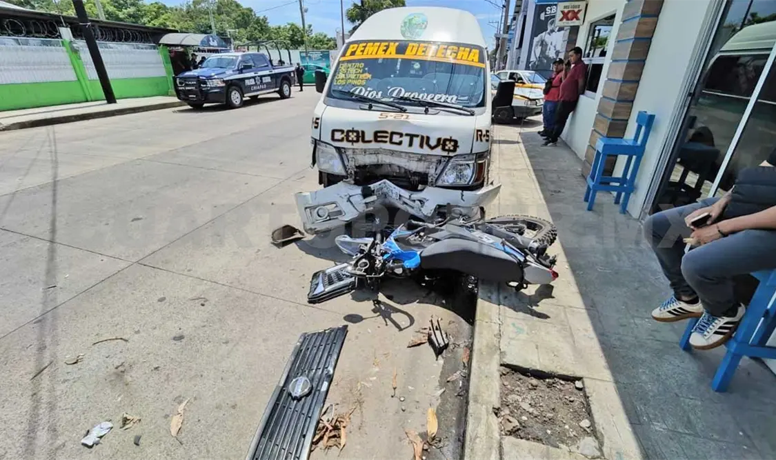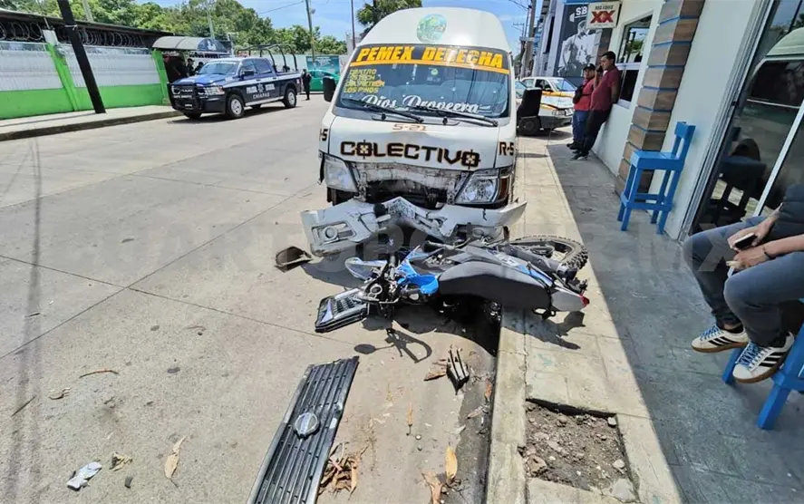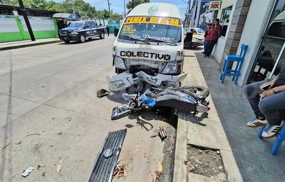 Se dijo que una combi del servicio colectivo de la ruta Pemex-Centro y un taxi con número económico 0455, se desplazaban de oriente a poniente sobre la 20ª calle Oriente y al llegar a la primera sur, presuntamente por “ir carrereando”, chocaron.