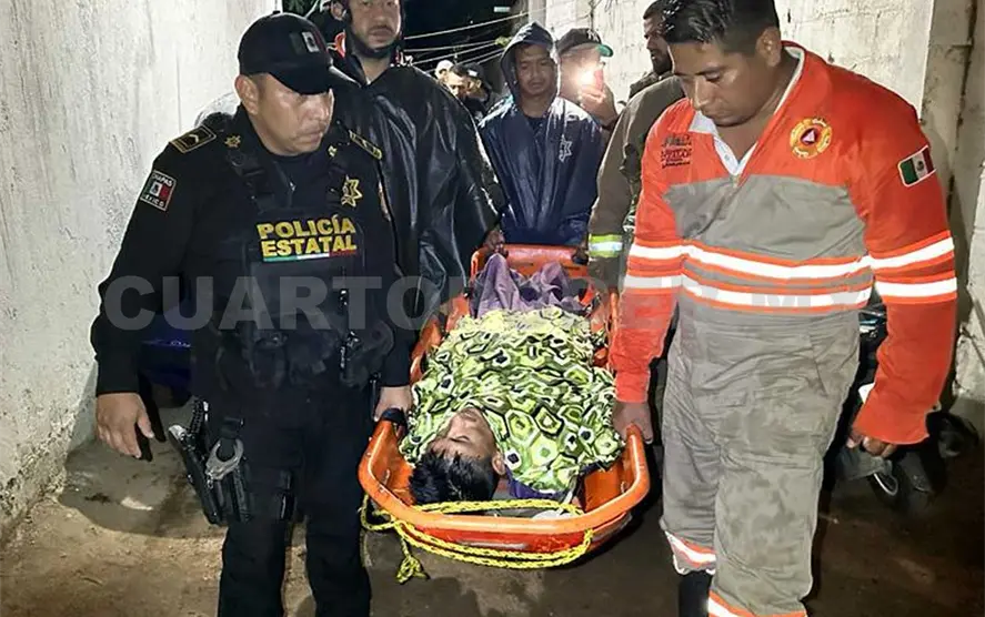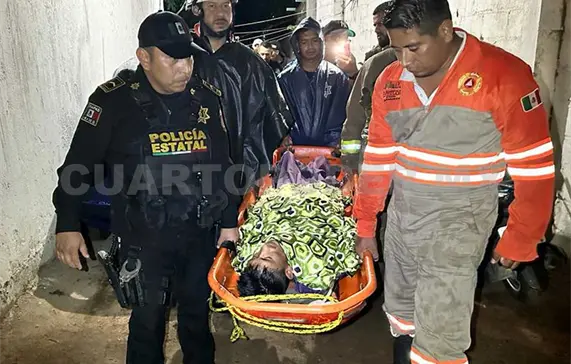 Fue así que colocando una escalera en una de las bardas lograron dar con la ubicación del afectado; con la ayuda de todos lo aseguraron a una tabla rígida y lo llevaron a piso firme para realizar una previa valoración, resultando con aparentes principios de hipotermia le retiraron su vestimenta mojada para colocarle una manta que le ayudara a recuperar la temperatura óptima.