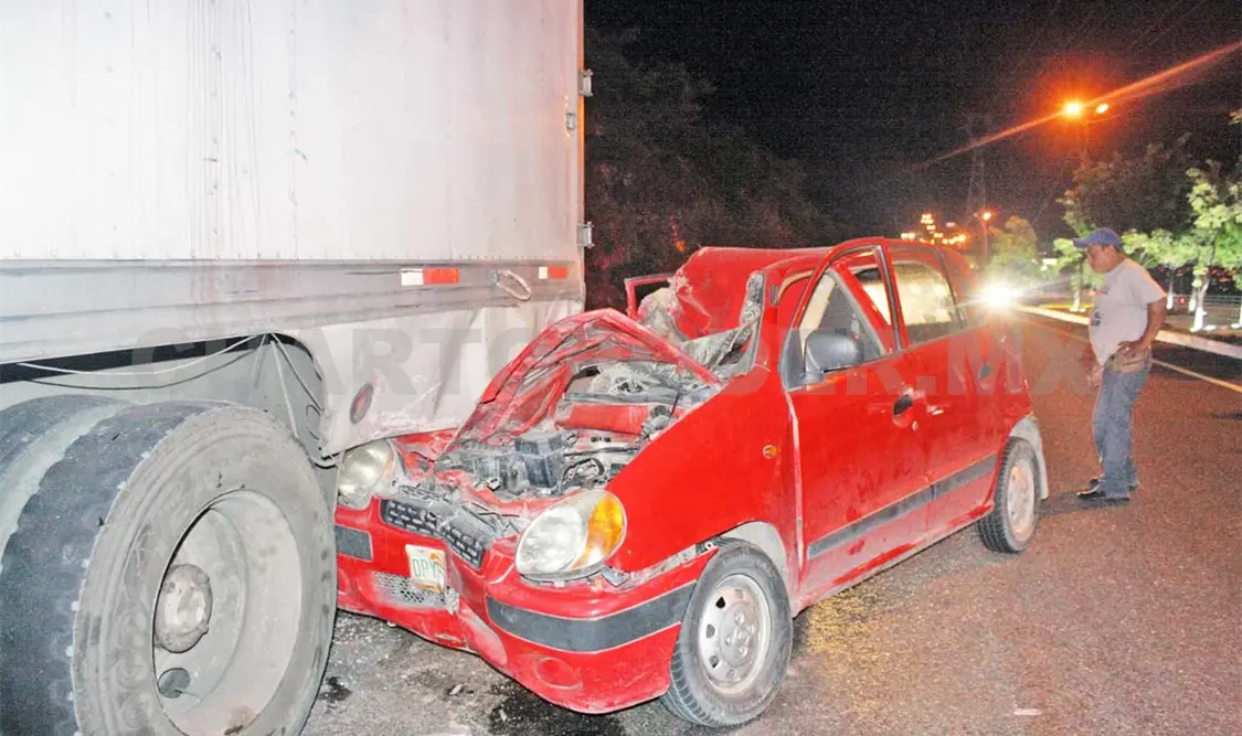 El sedán quedó comprimido de la parte del motor, toldo y parabrisas, a la llegada de los oficiales de Tránsito y Vialidad Municipal se solicitó el apoyo de una unidad de primeros auxilios.