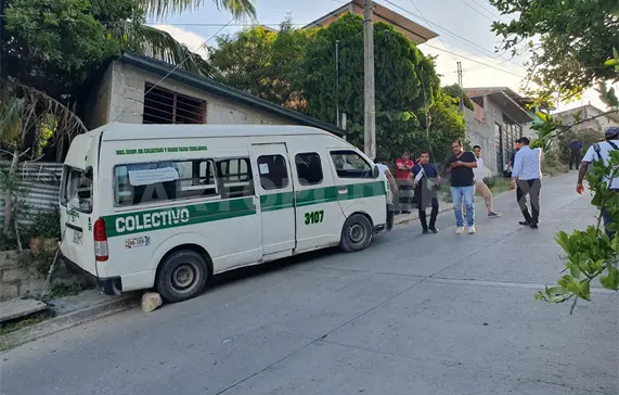 Durante la tarde del sábado, un transporte público en modalidad de colectivo se fue de reversa en una rampa de la colonia Condesa, en la capital Tuxtla Gutiérrez, el cual fue detenido por un poste de concreto propiedad de la Comisión Federal de Electricidad (CFE).