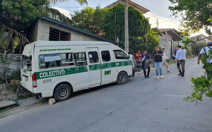 El chofer no pudo hacer nada al respecto y la combi acabó impactándose contra una retenida que sujeta al poste de concreto de la CFE. Presuntamente la causa fue una falla mecánica.