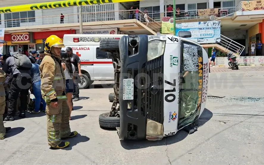 Ocho pasajeros malheridos dejó como saldo un aparatoso accidente de tránsito en el fraccionamiento San Fernando.