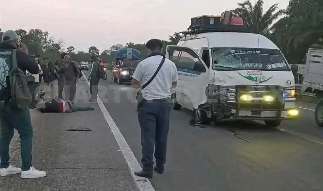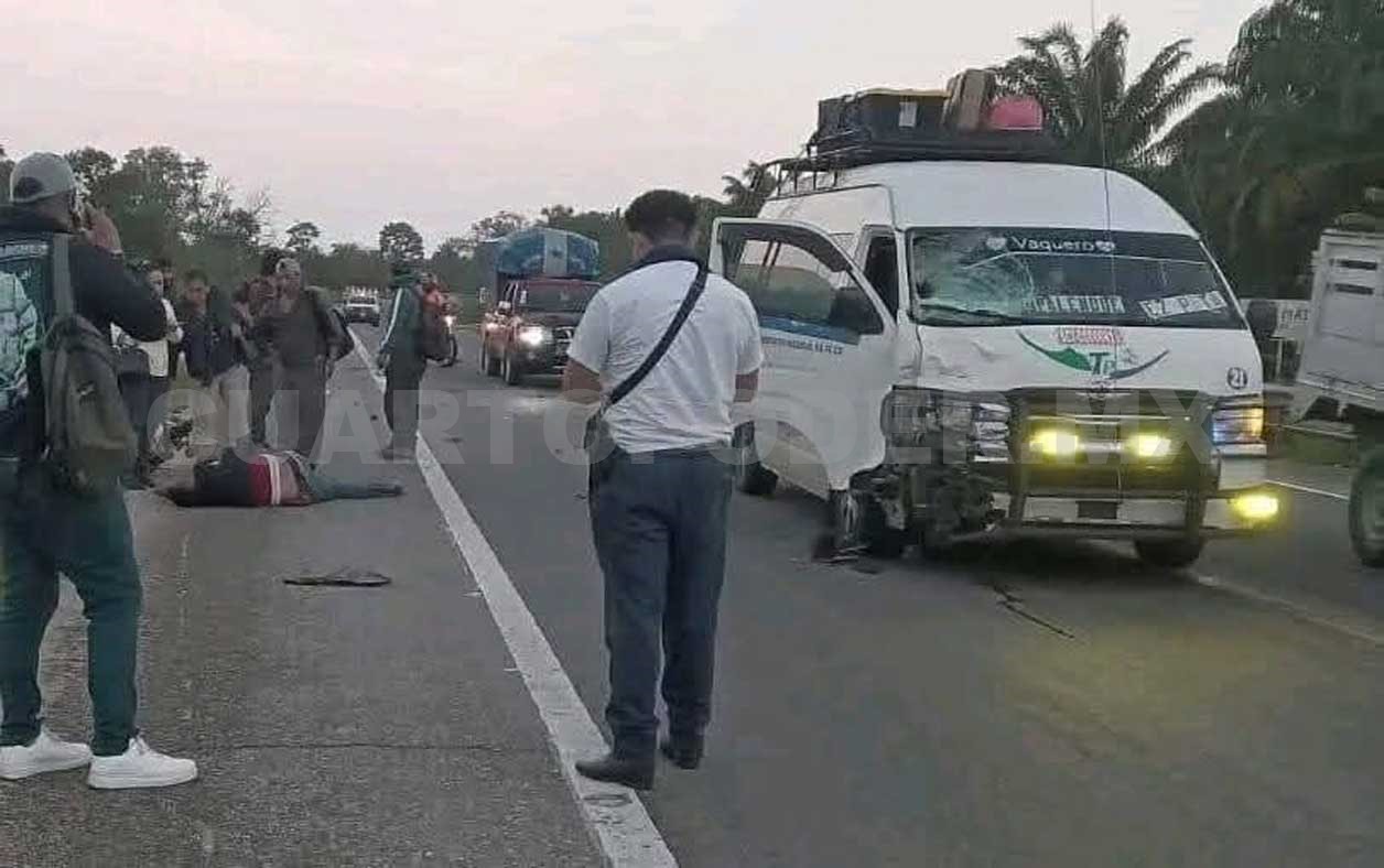 Un aparatoso accidente de tránsito se registró sobre la carretera Palenque-Playas de Catazajá, donde un motociclista perdió la vida al colisionar contra una unidad de transporte público de pasajeros Urvan, en modalidad de colectivo.