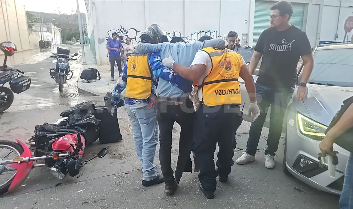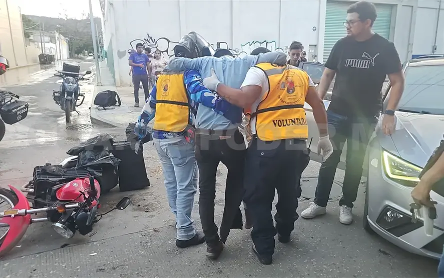 El percance se registró en la intersección de las calles 17 de Octubre y 17.ª Oriente, donde —de acuerdo con testigos— un automóvil no identificado golpeó de manera violenta a la motocicleta, proyectando al conductor contra el pavimento.