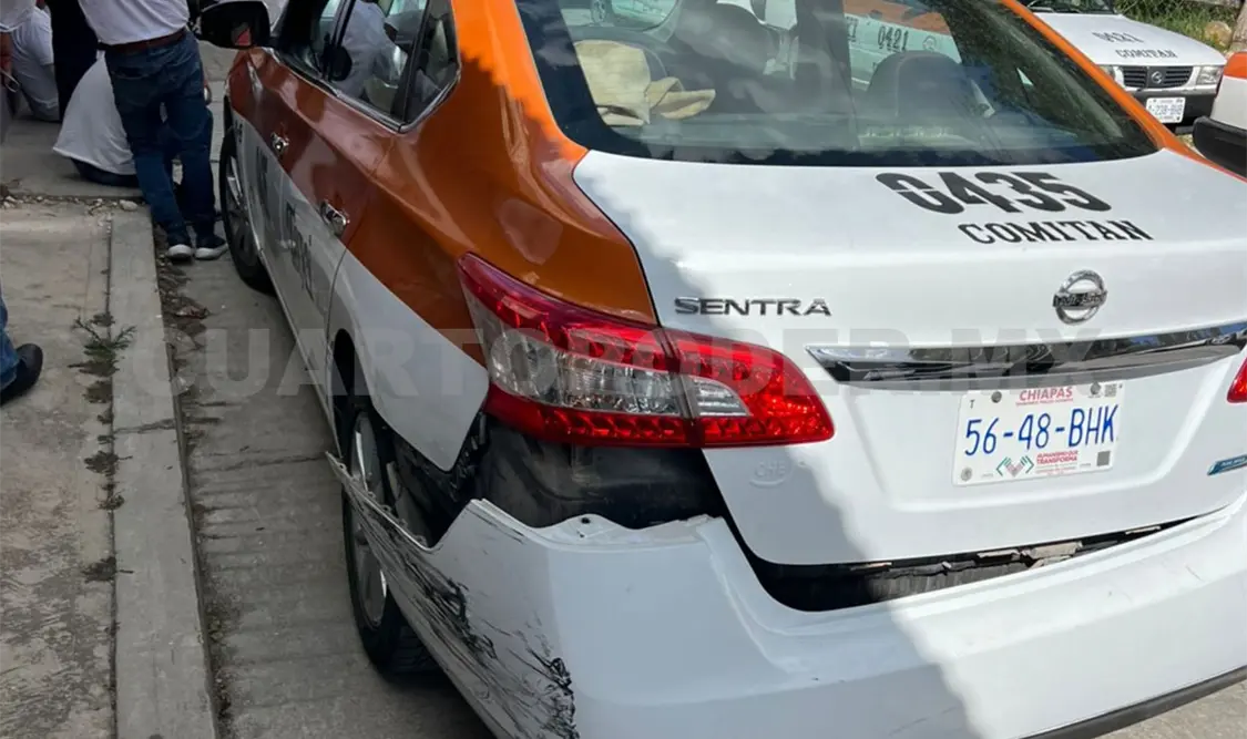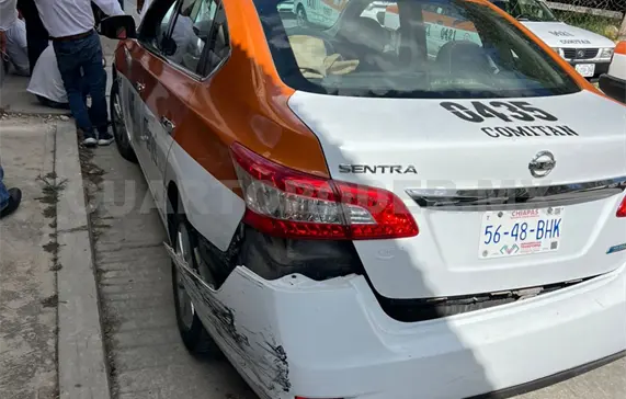 Un automovilista colisionó por alcance contra un vehículo de transporte público y se dio a la fuga para evitar el pago de los daños ocasionados, esto en el municipio de Comitán.