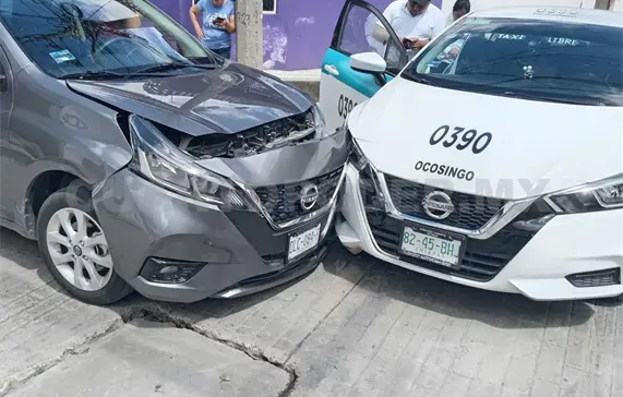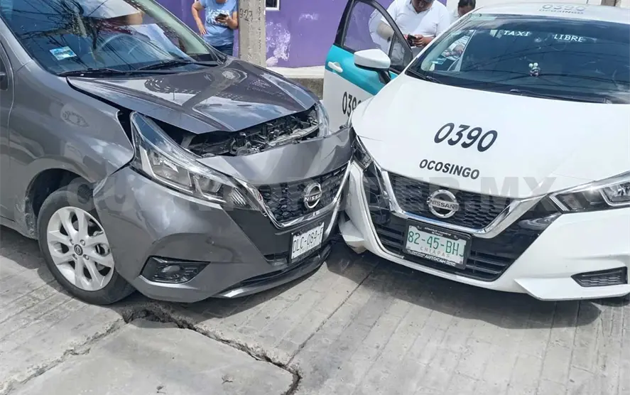 Lo anterior sucedió el jueves en la cabecera municipal sobre la 4.ª avenida Sur Oriente del barrio La Candelaria, teniendo como involucrados a un taxi del sitio Ocosingo, marcado con el número económico 0390, y a un automóvil Nissan Versa, color gris.