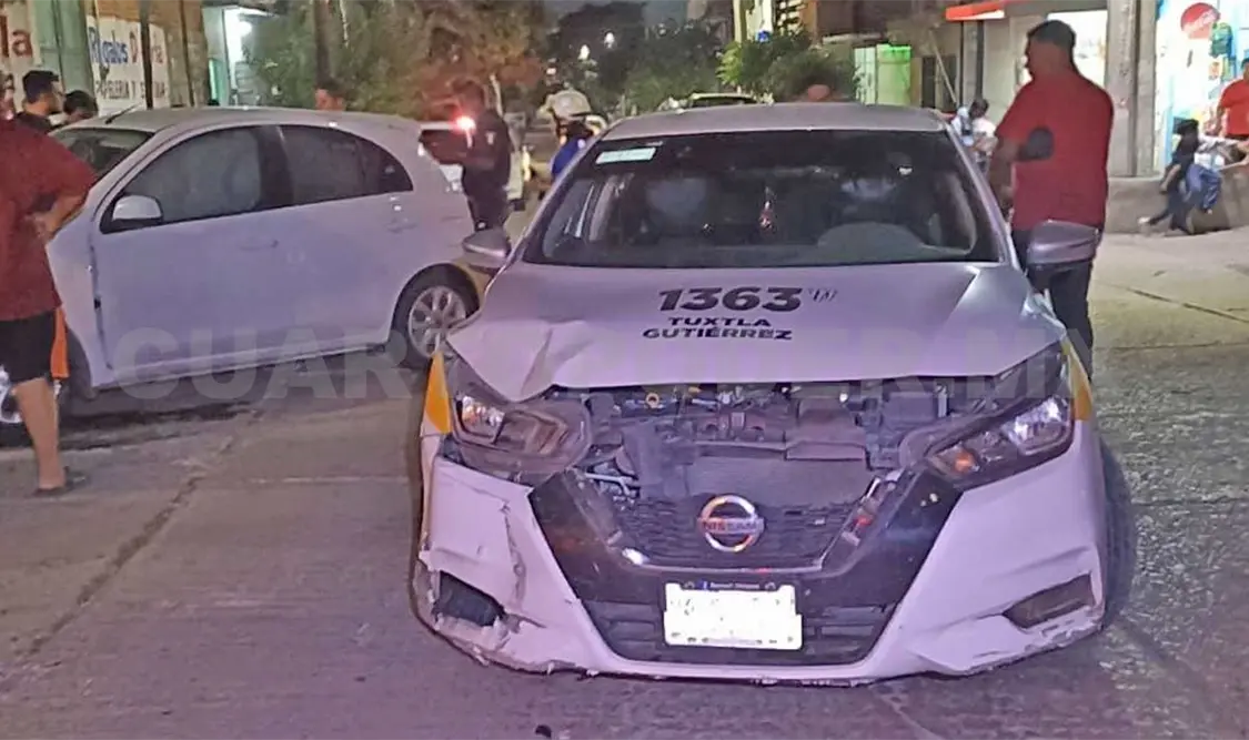 Dos personas resultaron con lesiones de consideración durante un accidente de tránsito en el barrio San Francisco, localizado en la capital Tuxtla Gutiérrez, en las últimas horas de la noche del viernes.