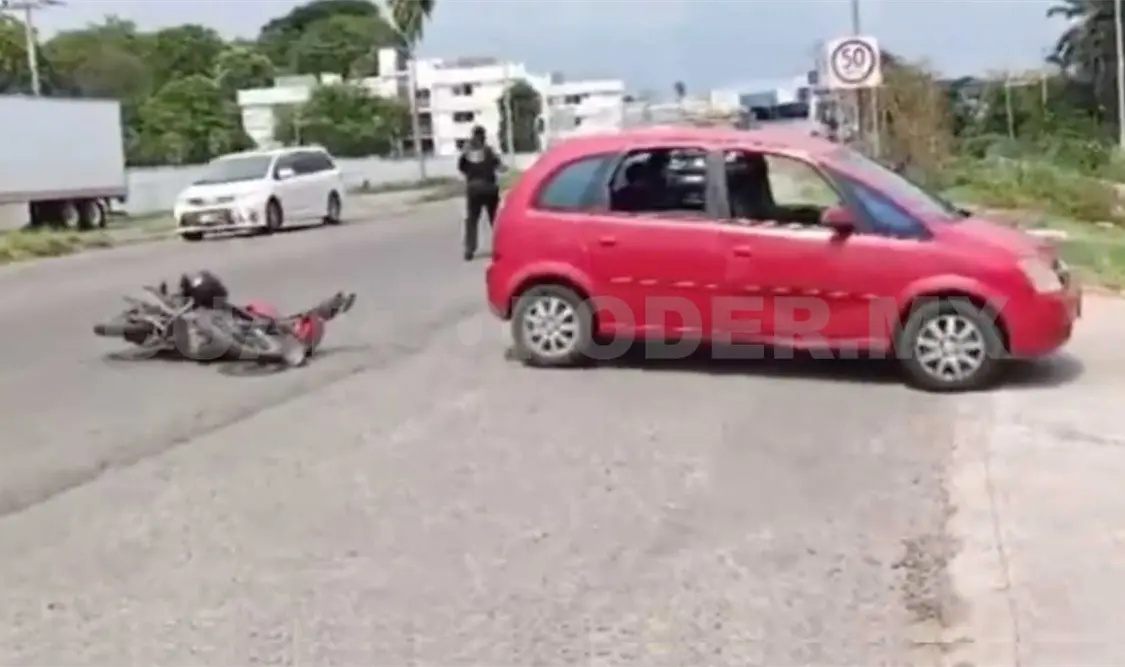 Frente al fraccionamiento Buenos Buenos Aires intentó doblar al lado izquierdo, pero lo hizo sin precaución y el conductor de la motocicleta Italika se estampó en la portezuela.