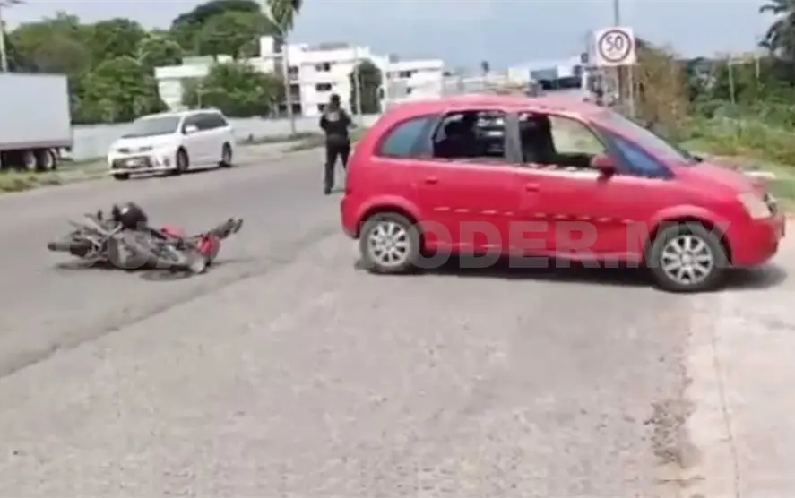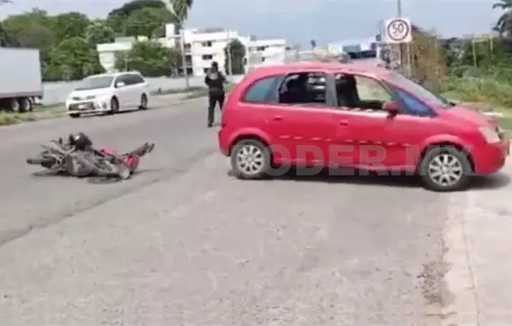 Daños materiales por más de cuatro mil pesos dejó el choque de una motocicleta y un vehículo sobre el libramiento Sur Poniente, a la altura de la primera entrada al fraccionamiento Buenos Aires, en el municipio de Tapachula.