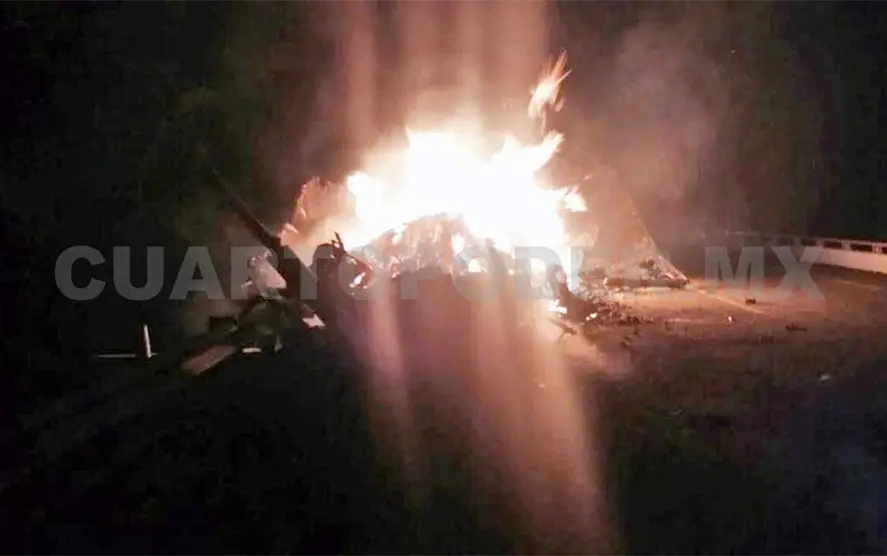 En el lugar quedó varado un tráiler totalmente calcinado tras haber chocado contra un muro. Elementos de Protección Civil acudieron para auxiliar y sofocar las llamas que consumieron en su totalidad la unidad pesada.