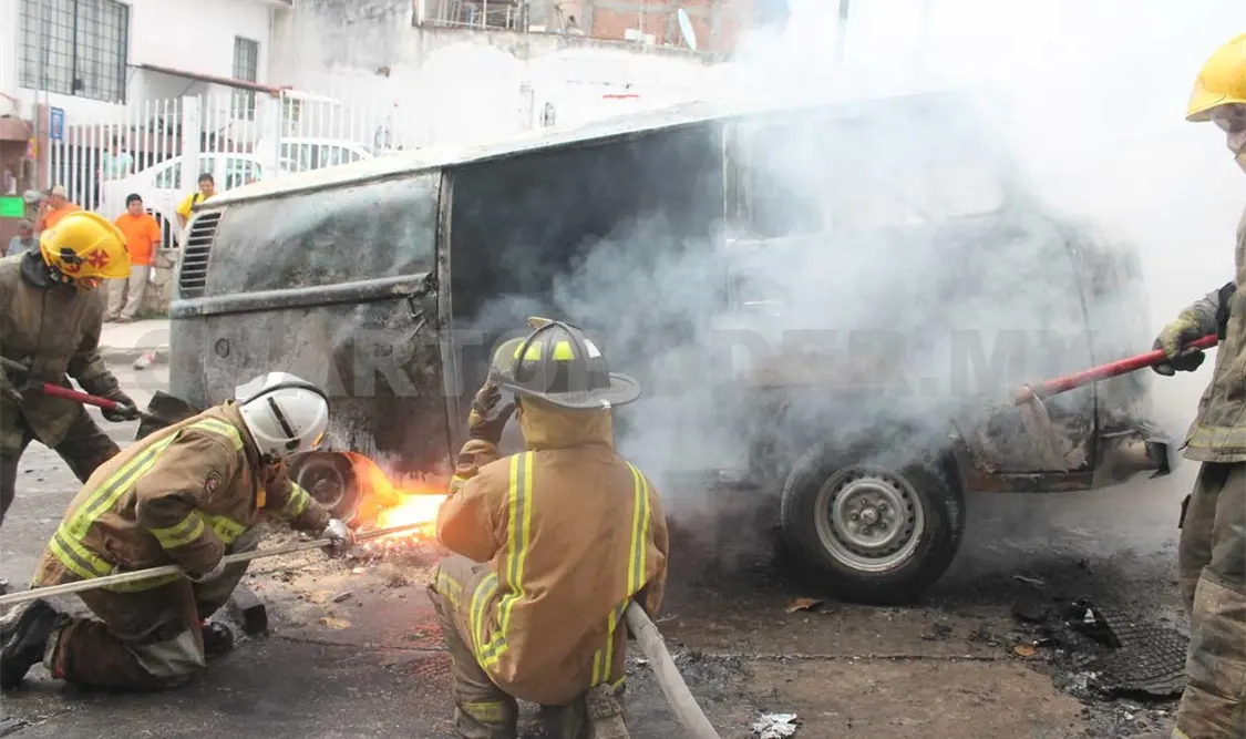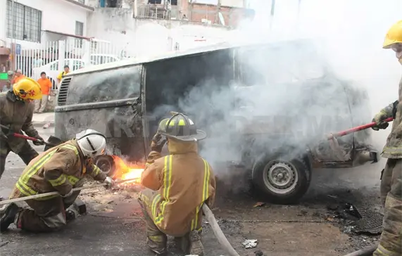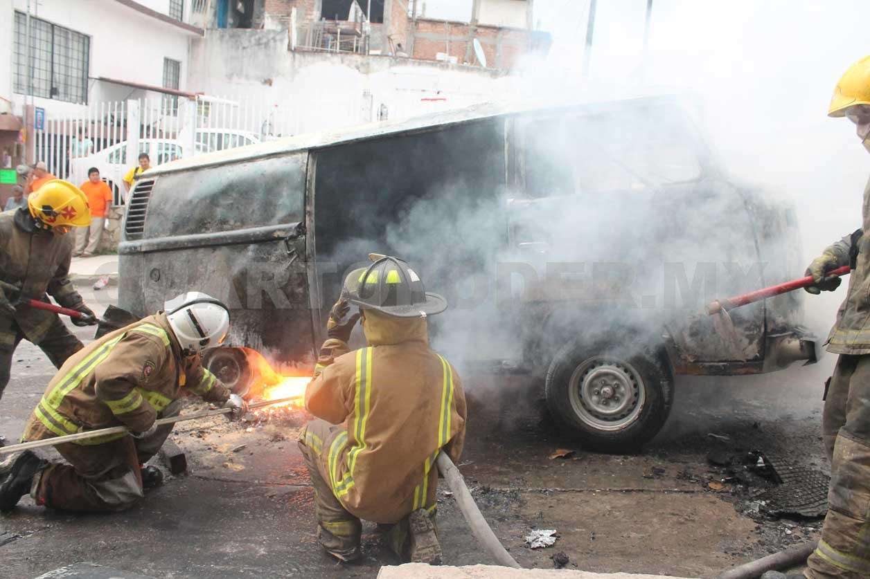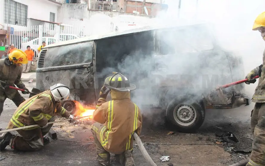 Personal del Heroico Cuerpo de Bomberos arribó para controlar y sofocar el siniestro, aunque la combi fue pérdida total.