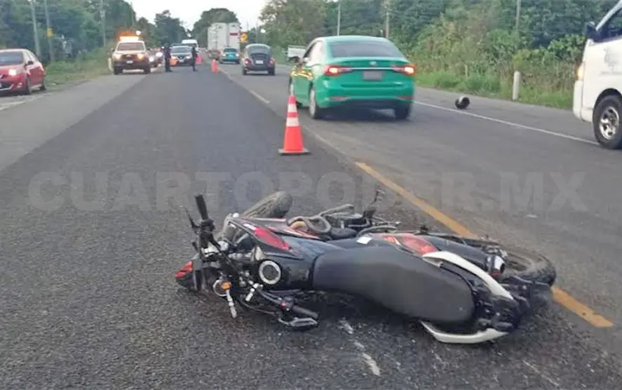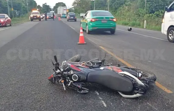 El accidente ocurrió en el tramo de Frontera Hidalgo a Metapa de Domínguez, en donde un motociclista al parecer no guardó su distancia y se impactó por alcance de la unidad del transporte público.