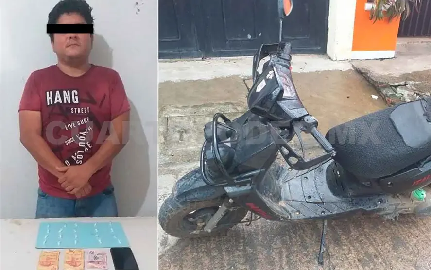 Ante esto, los uniformados se trasladaron a la altura de la unidad deportiva, carretera al ingenio, donde sorprendieron a este individuo que intercambiaba dinero en efectivo por el estupefaciente, por lo que desde ese momento le informaron que quedaba en calidad de detenido; posteriormente de leerles sus derechos, lo trasladaron a los separos de la cárcel preventiva y fue entregado ante el Ministerio Público.