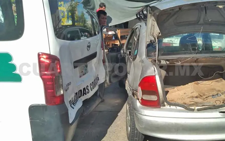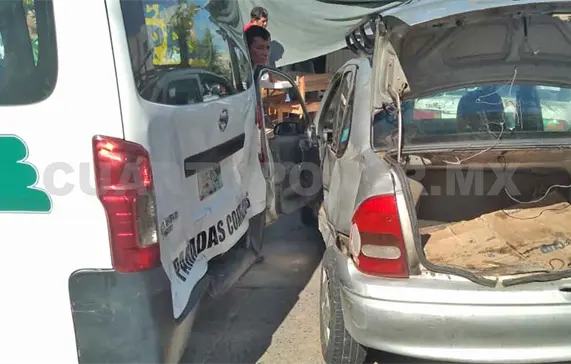 Esta unidad terminó con golpes en la parte trasera, mientras que el taxi marca Nissan tipo Tsuru, color blanco, manejado por Marco Gómez Díaz, también fue dañado por el vehículo particular.