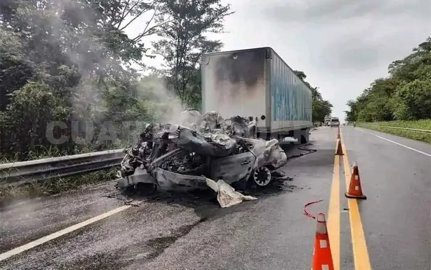 De acuerdo con el reporte, se presume que el exceso de velocidad fue la causa del fatal impacto. El automóvil se incendió tras el choque, por lo que el conductor terminó calcinado dentro de él.