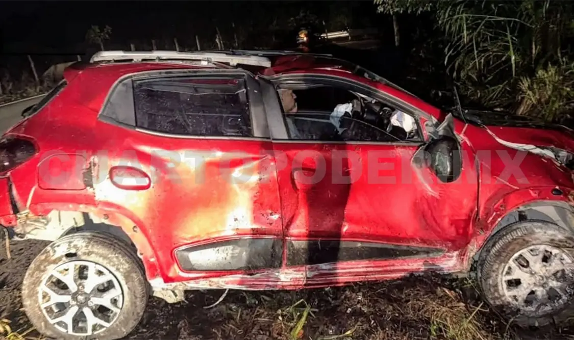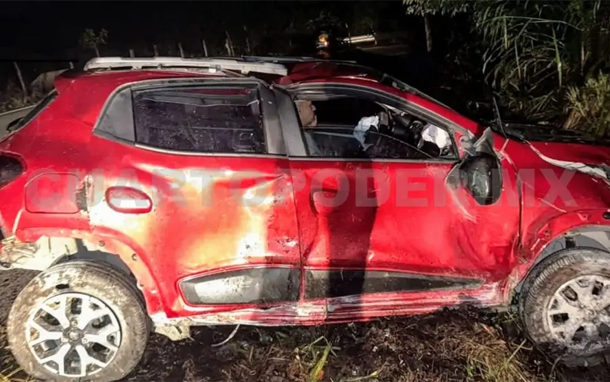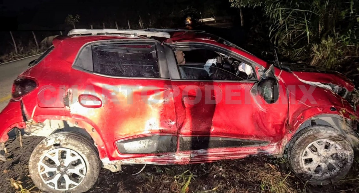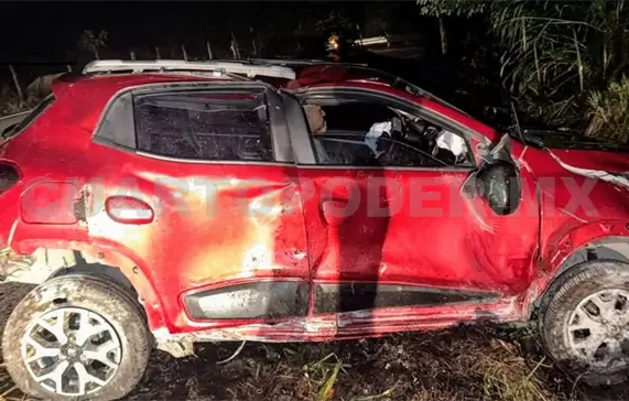De acuerdo con los primeros reportes, el exceso de velocidad habría sido la causa principal del accidente. El conductor, que viajaba en una camioneta Renault Kwid de color rojo, no pudo dominar el volante y acabó dando varias volteretas sobre la cinta asfáltica hasta quedar la unidad prácticamente destrozada a un costado del camino, entre la maleza.