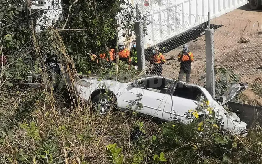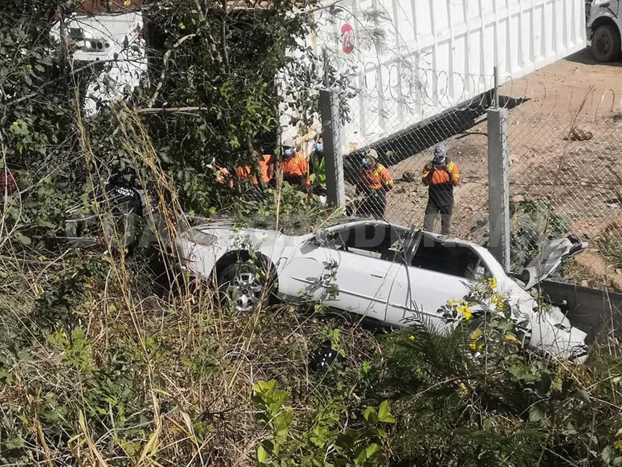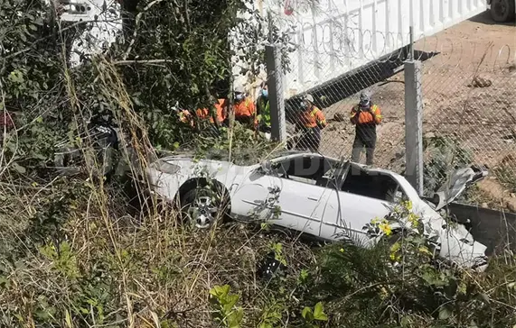 Sin embargo, el automóvil al parecer era conducido a exceso de velocidad, se salió de la carretera y terminó rodando por un barranco hasta terminar volcando y arrinconado contra la barda de las instalaciones de Veolia.